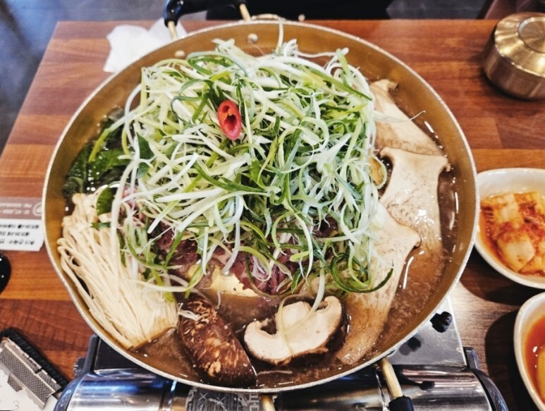 뜨끈한 국물에 갈비, 당면이 맛나게 있네요.