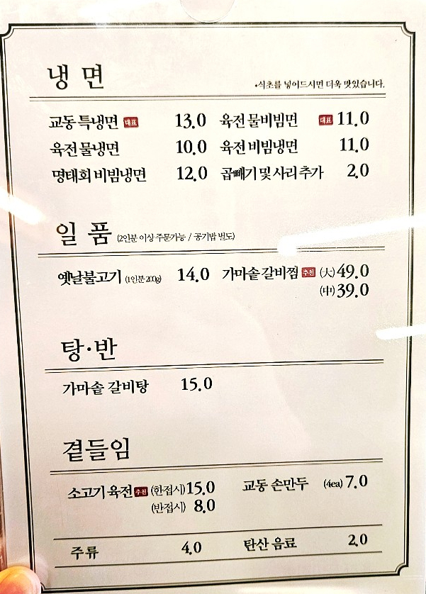 알고 보니 옛날 불고기와 냉면이 시그니처 메뉴였네요~