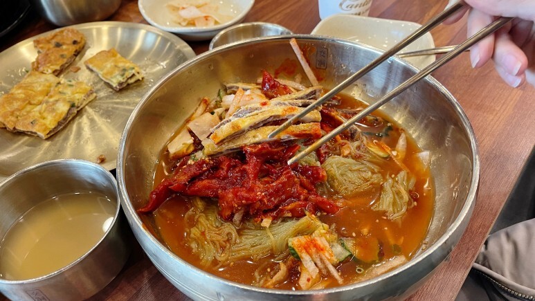 마지막으로 와이프가 주문한 명태회 비빔냉면~