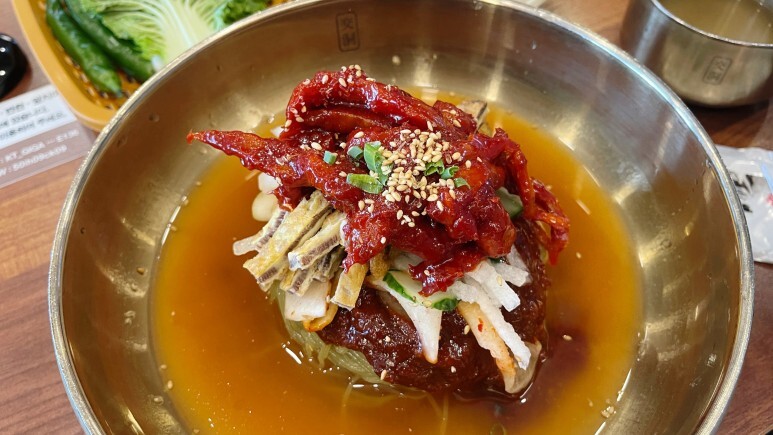 물냉면도 면이 굵은데 육수 맛이 정말 맛있더군요.