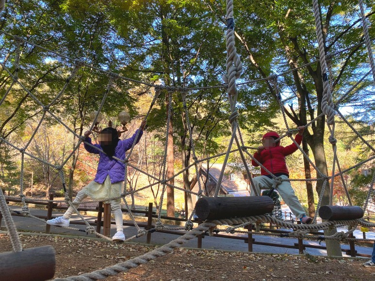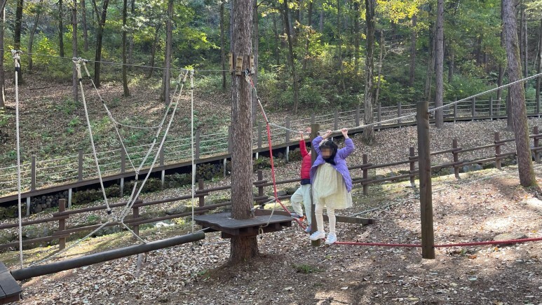 그네, 외줄타기, 미니짚라인, 오두막집 등이 있었어요