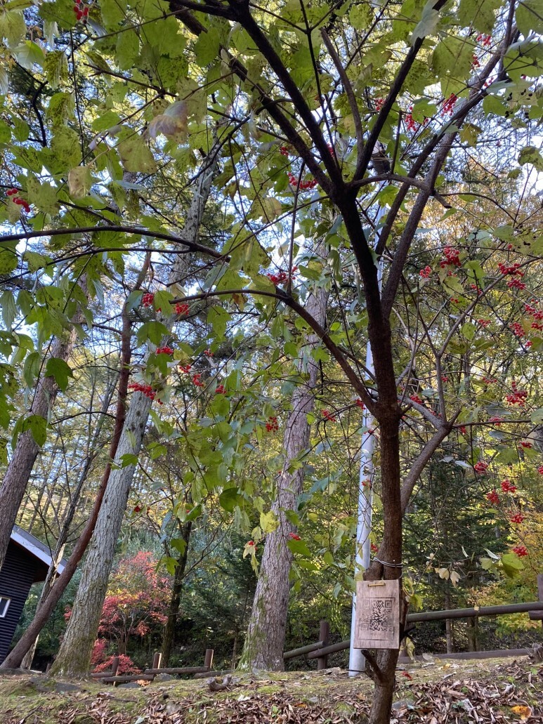 나무에 걸려 있는 QR판을 스캔해보면