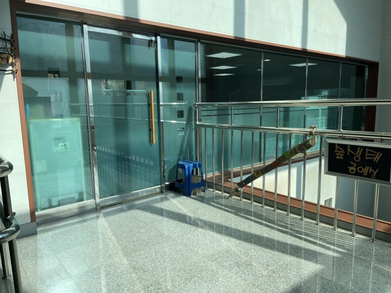 정면에 보이는게 세미나실이고, 2층에는 목공체험관이 있어요